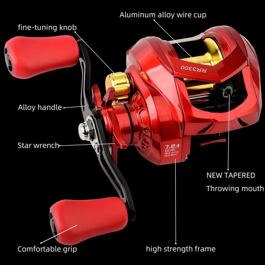 Baitcasting Reel Betriel 8KG Max Drag 7.2:1 Gear Ratio Fishing Reel Baitcaster Reels
